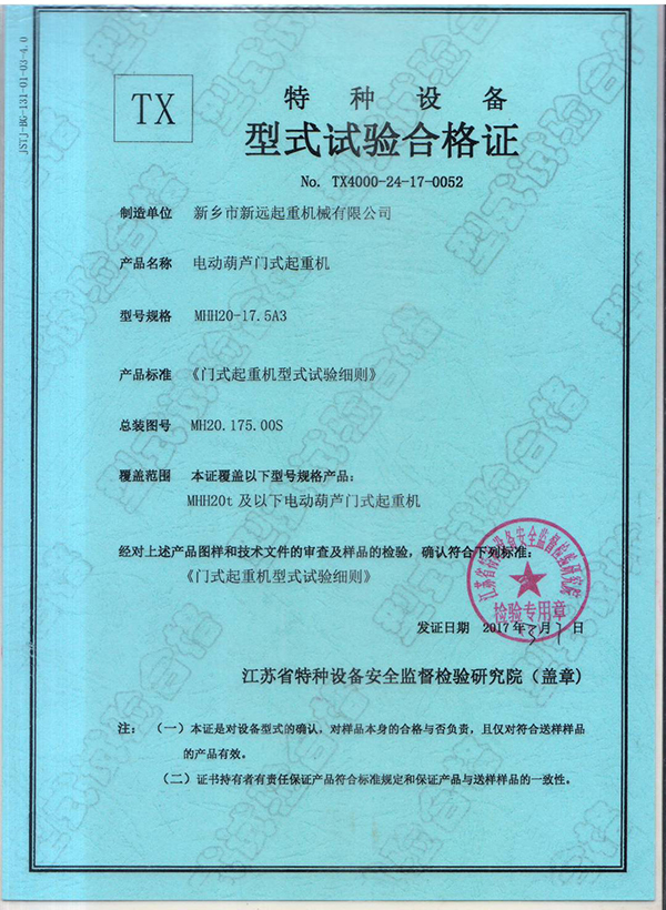 特種設(shè)備型式試驗合格證